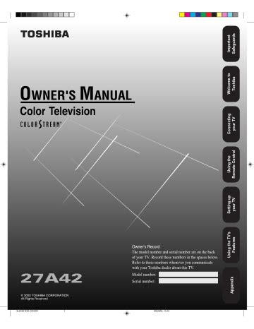 Presently you are looking for an Toshiba 27a42 Color Tv Service Manual example that will we provide here in some kind of document formats such as PDF, Doc, Power Point, and also images that will will make it easier for you to create an Toshiba 27a42 Color Tv Service Manual yourself. For a clearer look, you may open a few examples below. All the examples about Toshiba 27a42 Color Tv Service Manual about this website, we get from many sources so you could create a better record of your own.
